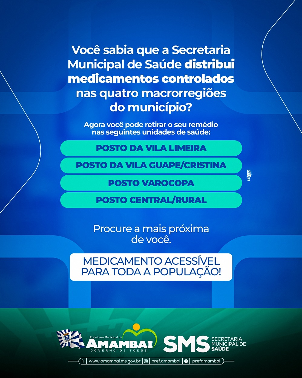 O morador amambaiense não precisa mais se deslocar até o Posto de Saúde Central na busca de seus medicamentos controlados indicados pelos profissionais de saúde do município por meio do Sistema Único de Saúde (SUS).