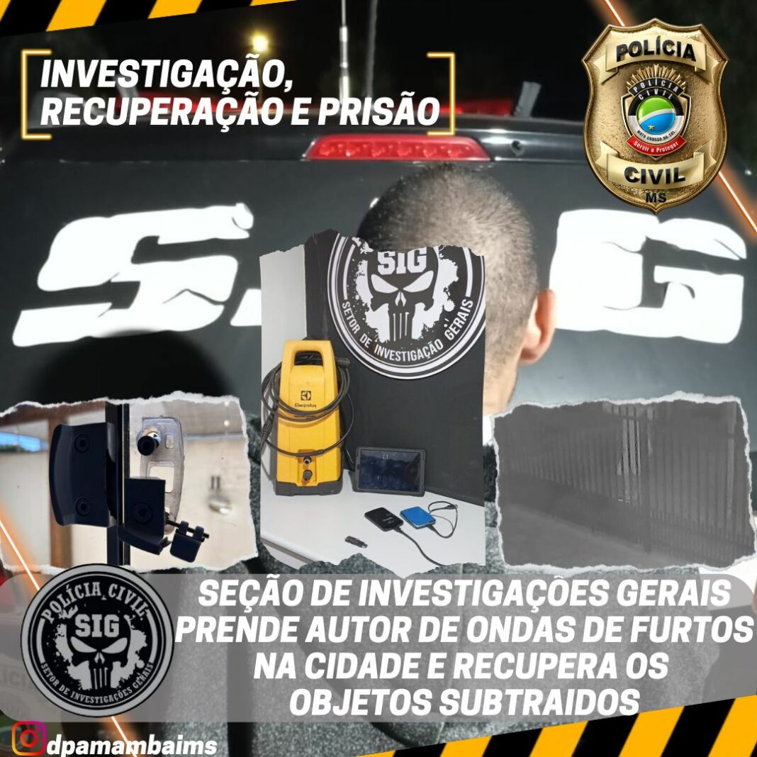 A Polícia Civil de Amambai recuperou os objetos furtados de um instituto da cidade e prendeu o suspeito do crime, que já possuía mandado de prisão em aberto por envolvimento em outros furtos registrados no município.