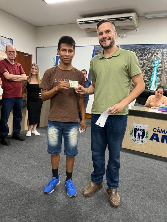 A entrega contou com a presença do prefeito de Amambai, Sérgio Barbosa, do presidente da Câmara Municipal, Darci José da Silva, das vereadoras Cida Farias e Suzana Ulisses, além dos secretários municipais de Governo, Ronaldo Mayr, e de Desenvolvimento Econômico, Roberto Júnior Dias. Também participou do momento a representante do Posto de Identificação de Amambai, Marinete Ferreira Rodrigues, que acompanhou o processo de emissão e organização dos documentos.