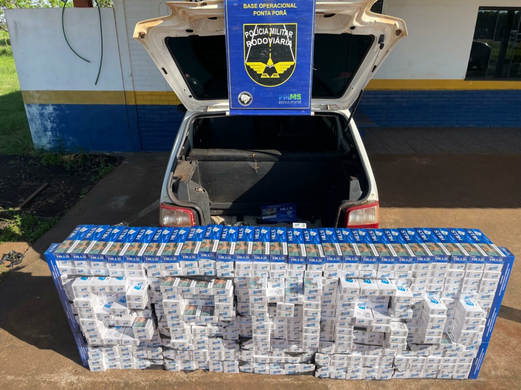 Durante a vistoria, os policiais localizaram 500 pacotes de cigarros de origem estrangeira, sendo 450 da marca Fox e 50 da marca Hills, armazenados no porta-malas e sobre os bancos traseiros do automóvel. A condutora informou que a mercadoria havia sido adquirida na região de fronteira e seria transportada até o município de Maracaju.