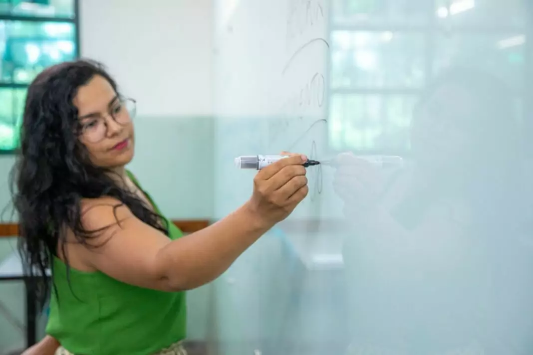 Professora ensinando em sala de aula