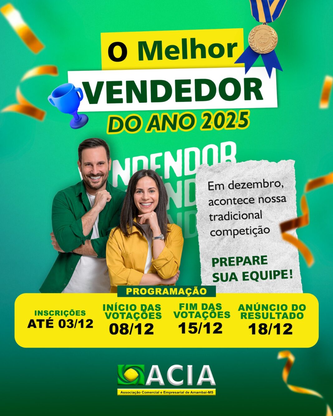 A Associação Comercial e Empresarial de Amambai (ACIA) está realizando duas campanhas de Natal junto às empresas associadas, com o objetivo de fomentar o comércio local e valorizar os colaboradores. Neste ano, a entidade apresenta a 3ª edição das iniciativas “Melhor Vendedor(a) do Ano” e “Loja Mais Enfeitada”.
