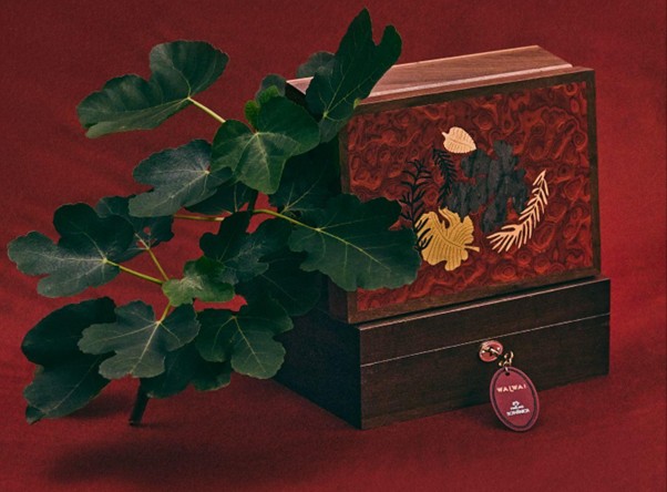 Aposta da Natura Bothânica para a data mais presenteável do ano, o Natal, o acessório apresenta um design complexo e orgânico na tampa, executado com a minúcia da marchetaria. O padrão de folhas estilizadas e a madeira como imbuia e sumaúma, simboliza a riqueza da biodiversidade e a atenção aos detalhes que caracterizam o luxo consciente. A peça foi desenhada para abrigar o ritual de uso dos produtos de Natura Bothânica, tornando o ato de perfumar o ambiente em uma experiência ainda mais sofisticada e memorável. Além da versatilidade da ocasião de uso do acessório como artigo de decoração ou porta jóias.