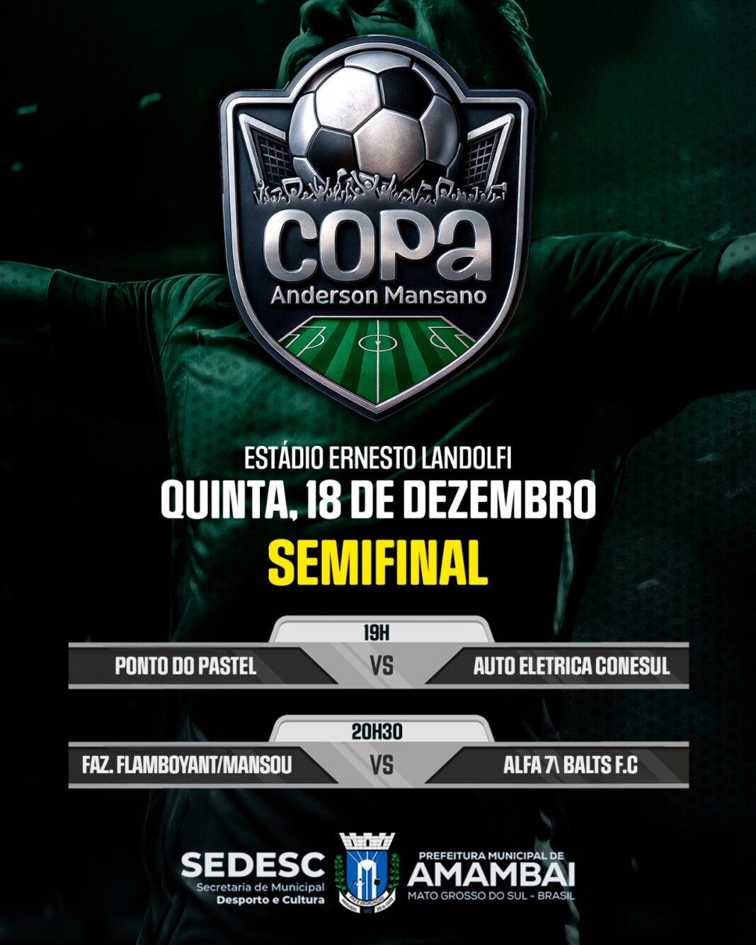 O Estádio Ernesto Landolfi será palco de grandes emoções nesta quinta-feira, 18 de dezembro, com a disputa das semifinais da Copa Anderson Mansano. A competição, que vem movimentando o esporte amambaiense, reúne equipes que se destacaram ao longo do campeonato e promete jogos decisivos.