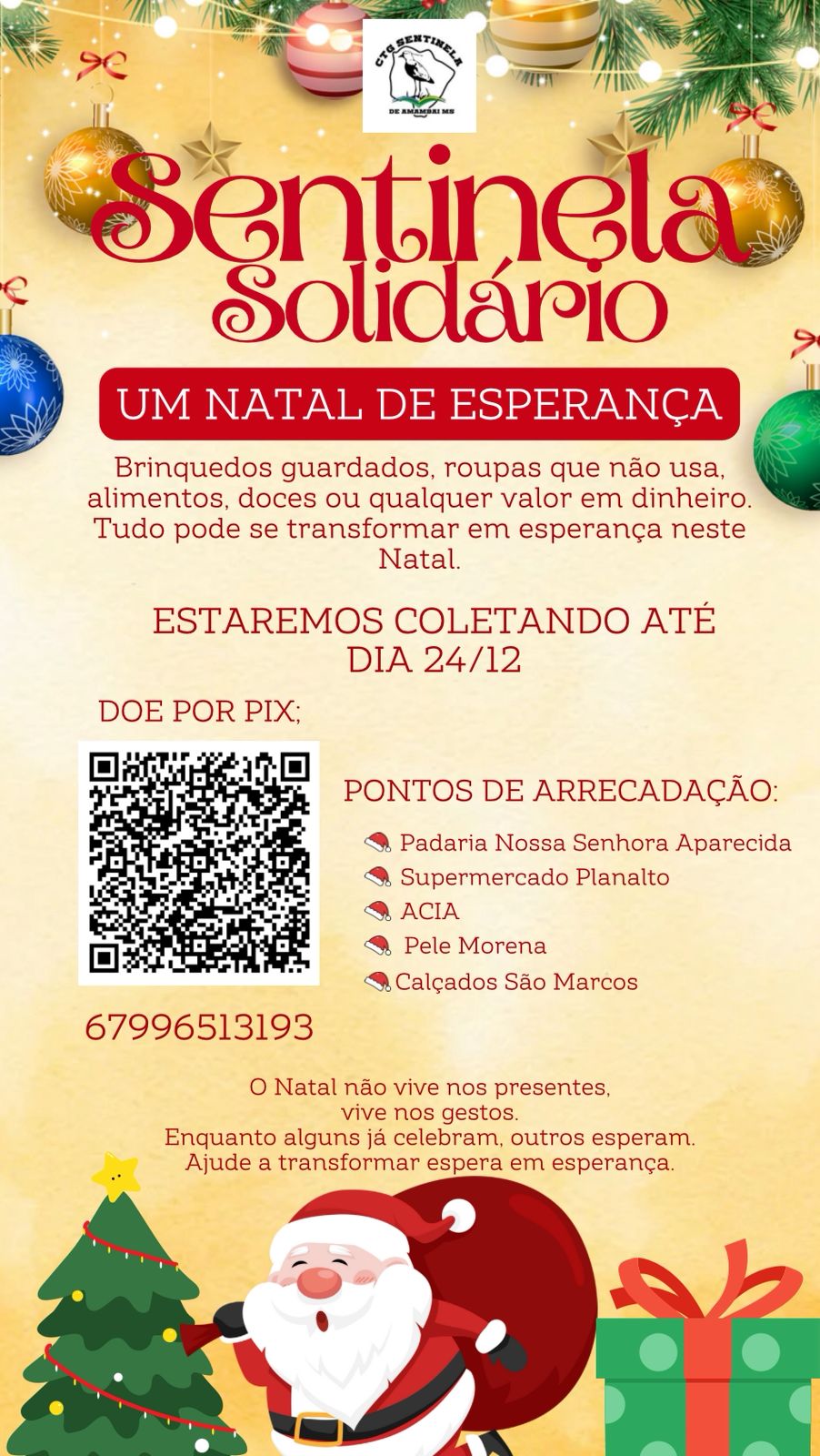 O CTG Sentinela de Amambai está promovendo a ação solidária “Sentinela Solidário – Um Natal de Esperança”, com o objetivo de arrecadar doações para ajudar famílias neste período de Natal.