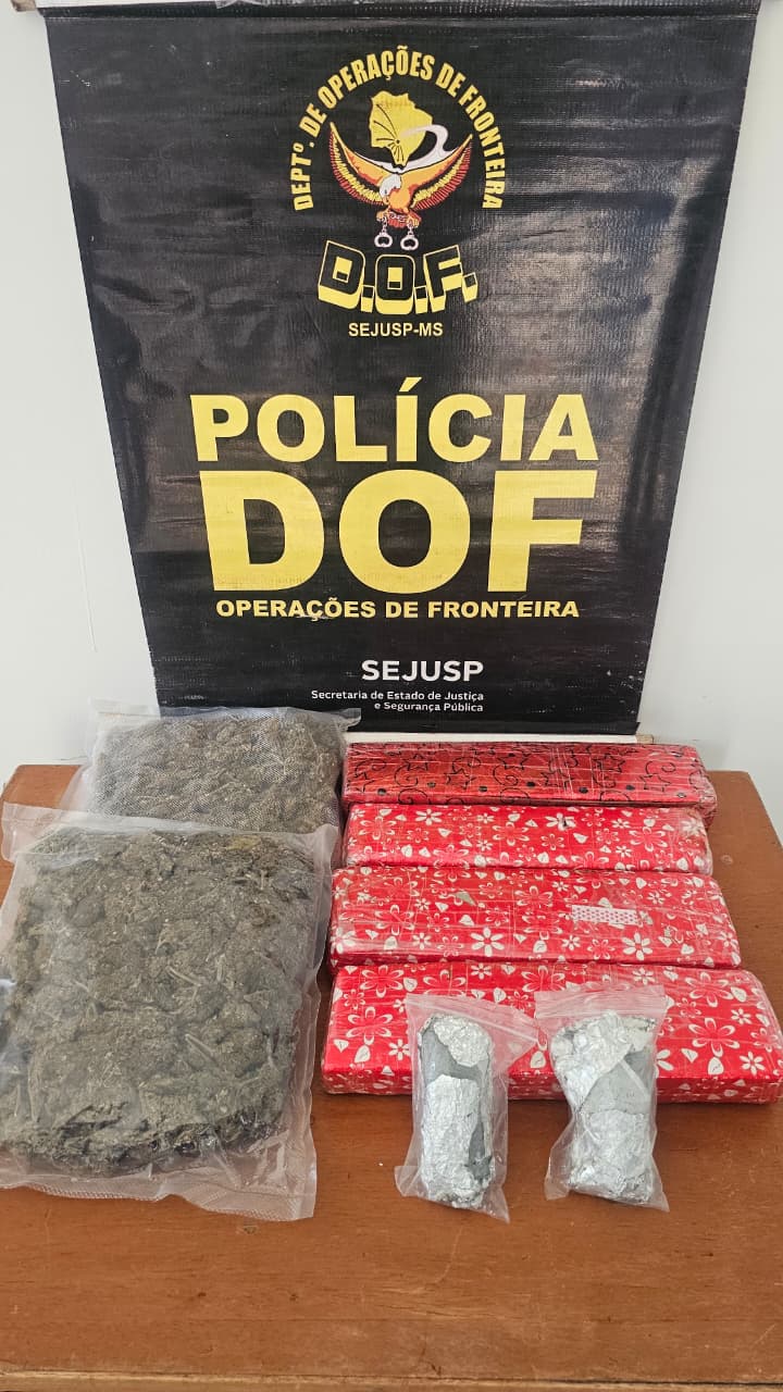 Policiais militares do DOF (Departamento de Operações de Fronteira) prenderam, nesta quinta-feira (18), um homem de 22 anos transportando maconha, skunk e haxixe em um ônibus de passageiros. A ação ocorreu na rodovia MS-156, entre os municípios de Amambai e Caarapó.