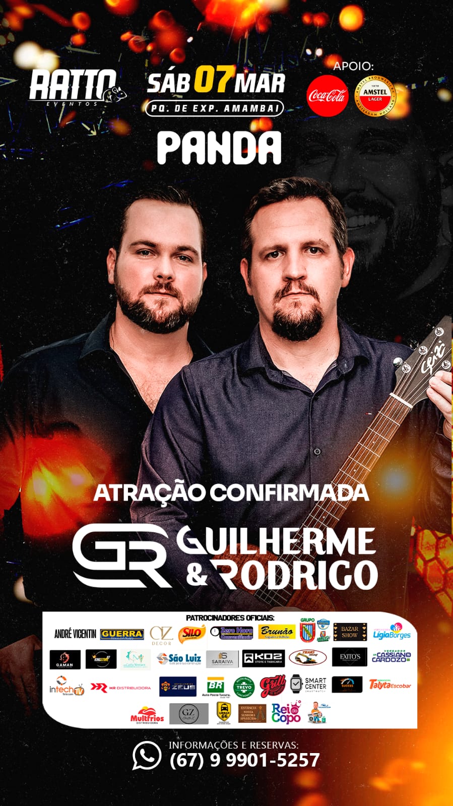 Foi confirmada a primeira atração de abertura do show Panda – Sem Moderação, que acontece no dia 7 de março de 2026, em Amambai. A dupla Guilherme & Rodrigo sobe ao palco para abrir a noite, que promete movimentar o município e atrair público de toda a região.