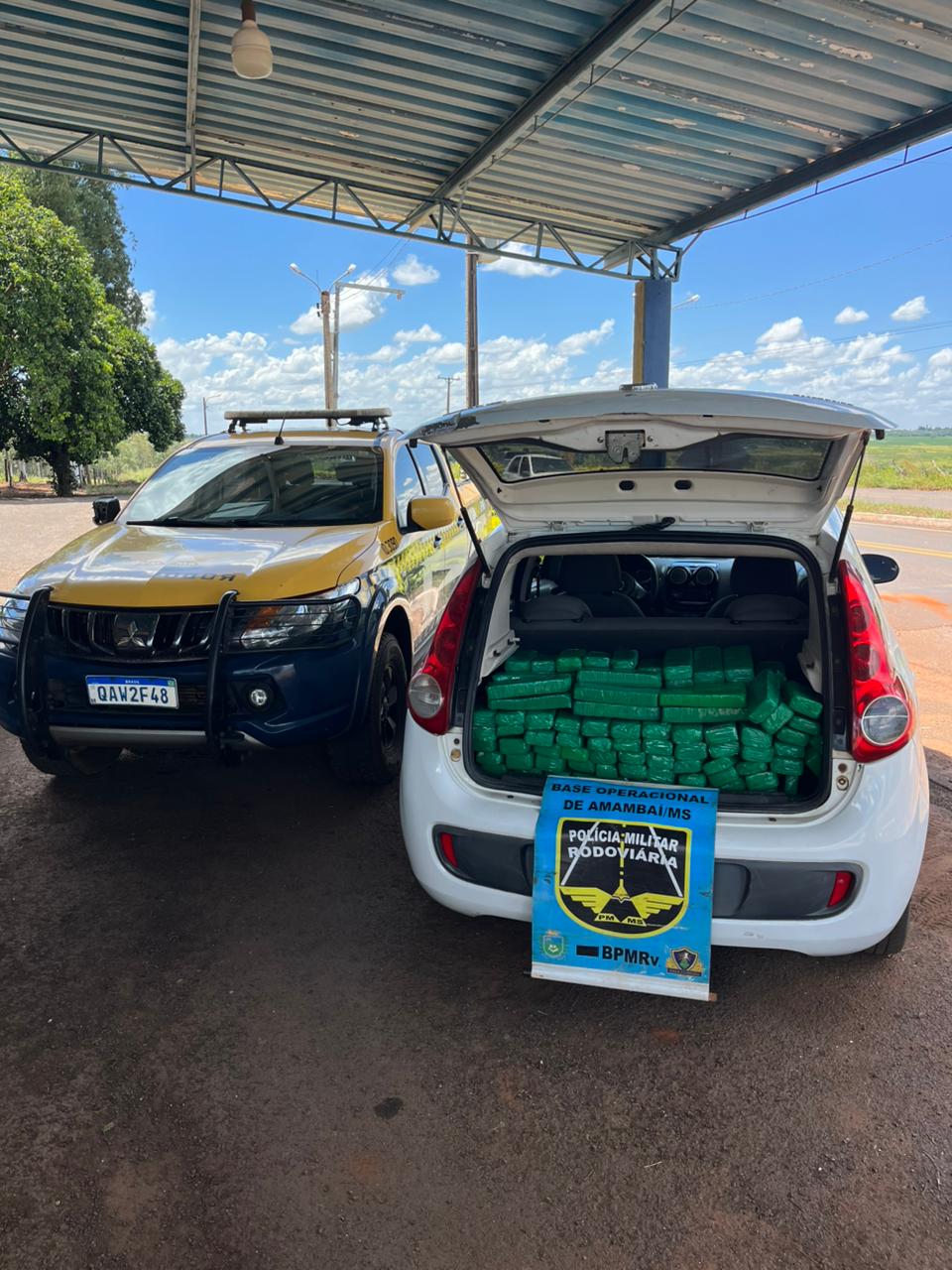 Na manhã desta quarta-feira (21), por volta das 11h30, a equipe do Batalhão de Polícia Militar Rodoviária (BPMRv) realizava fiscalização de trânsito na rodovia MS-156, km 242, no trecho entre Amambai e Tacuru, quando deu ordem de parada a um veículo Fiat Palio, de cor branca, com placas de Orleans/SC.