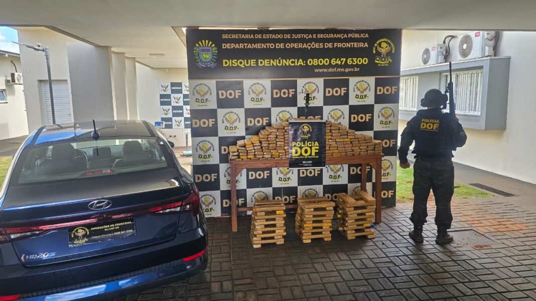 Policiais militares do DOF (Departamento de Operações de Fronteira) apreenderam, neste sábado (24), na rodovia MS-270, em Dourados, 256 quilos de maconha que eram transportados em um veículo Hyundai HB20. Um homem de 53 anos foi preso em flagrante.