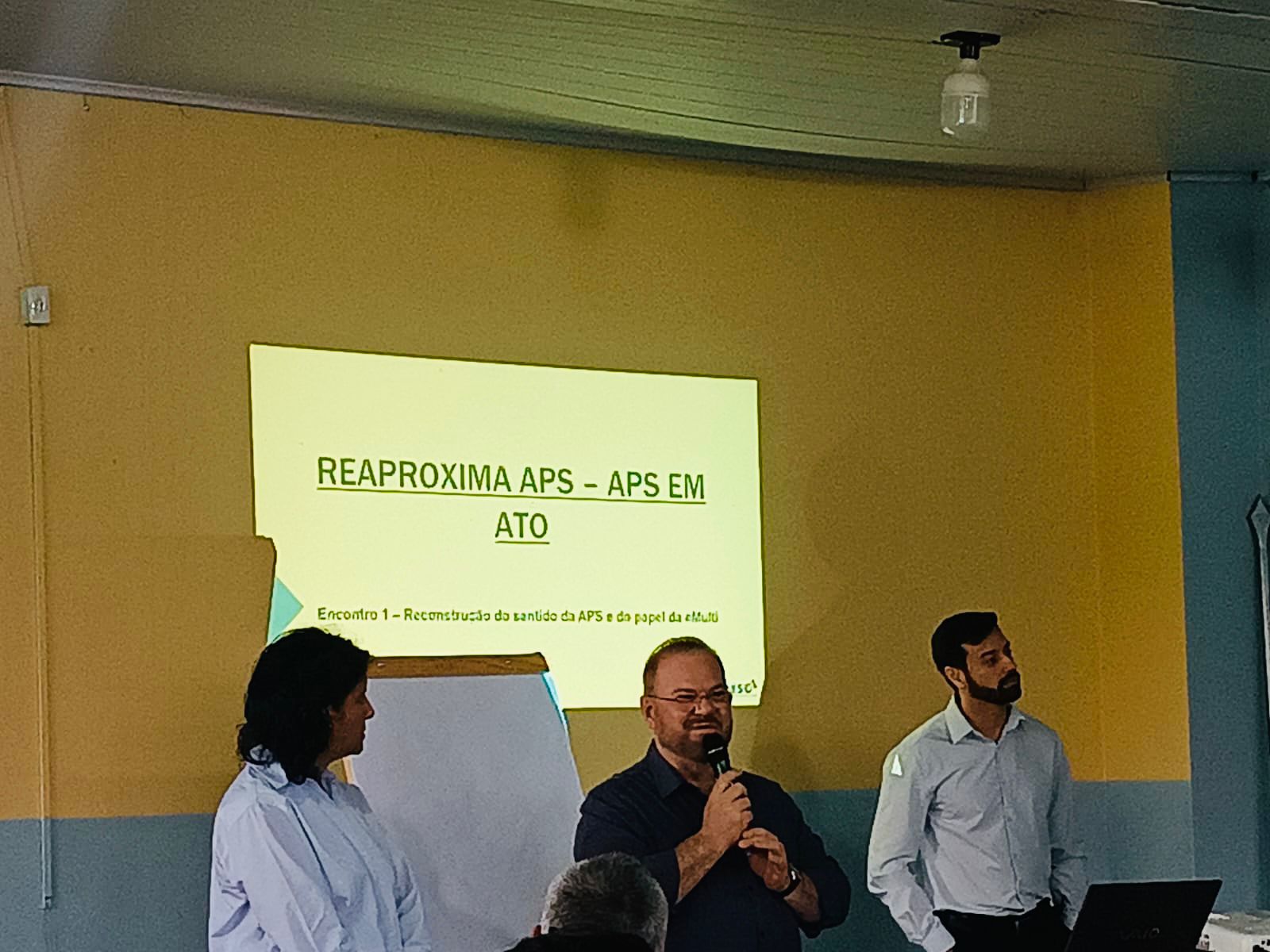 O encontro teve início às 8h e marcou o Encontro 1 – Reconstrução do sentido da APS e do papel da eMulti, promovendo um momento de reflexão e alinhamento entre os profissionais.