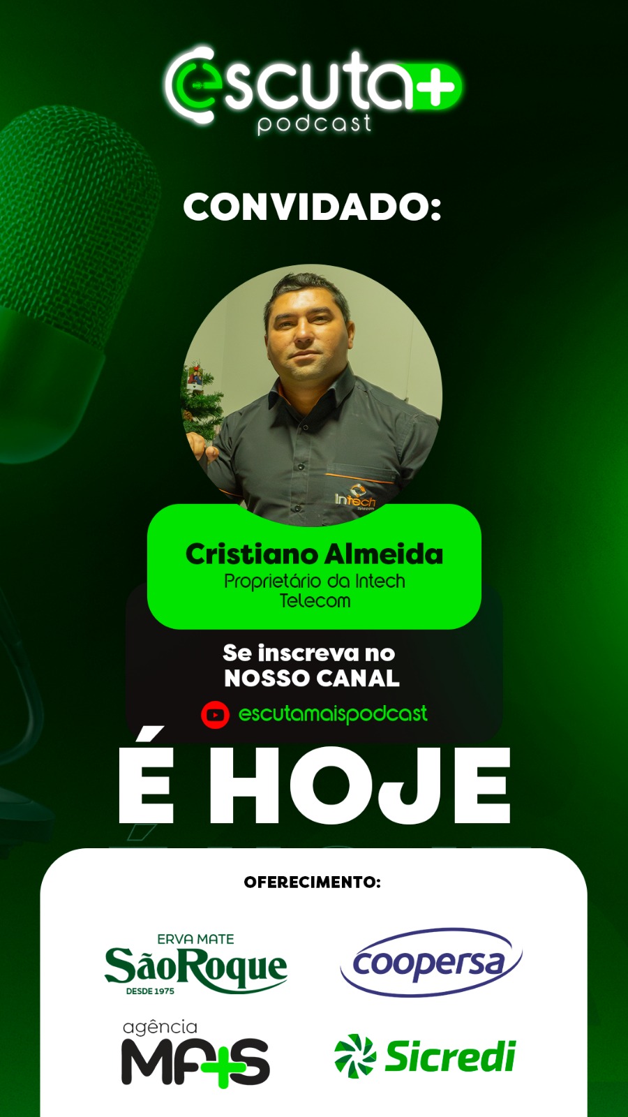 O empresário Cristiano Almeida, proprietário da Intech Telecom, será o convidado desta sexta-feira, 27 de março, do Escuta+ Podcast.
