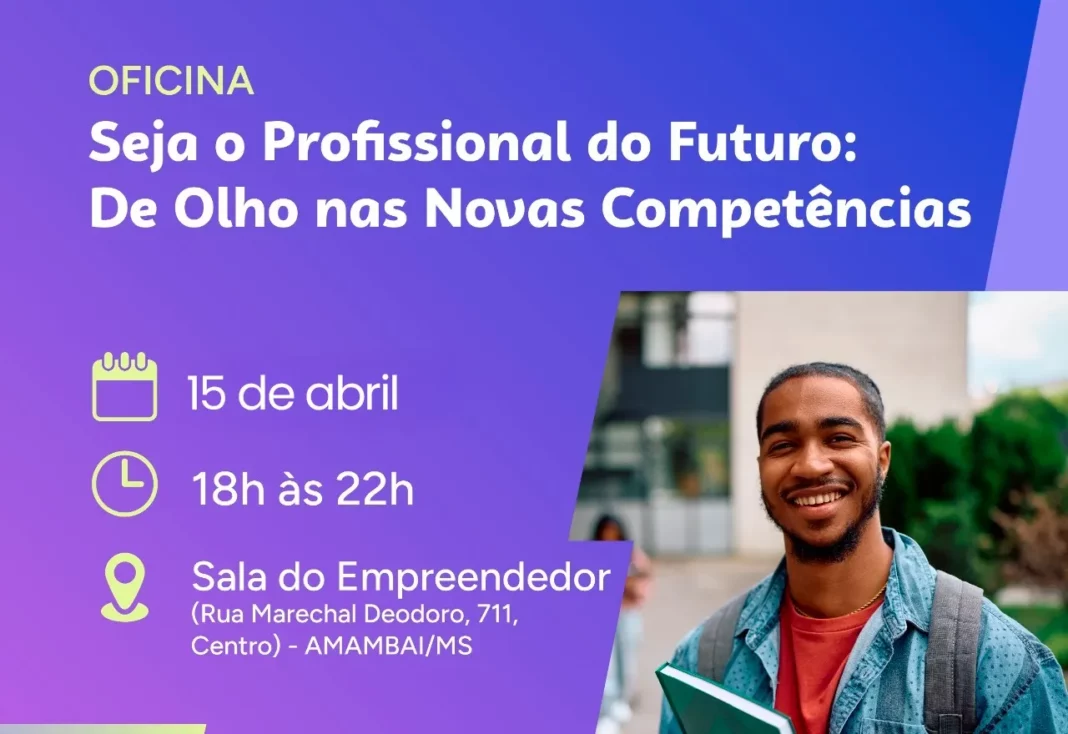 A oficina gratuita “Seja o Profissional do Futuro: de Olho nas Novas Competências”, que inicialmente estava programada para o dia 9 de abril, foi reagendada e será realizada no próximo dia 15 de abril (quarta-feira), das 18h às 22h, na Sala do Empreendedor, em Amambai.
