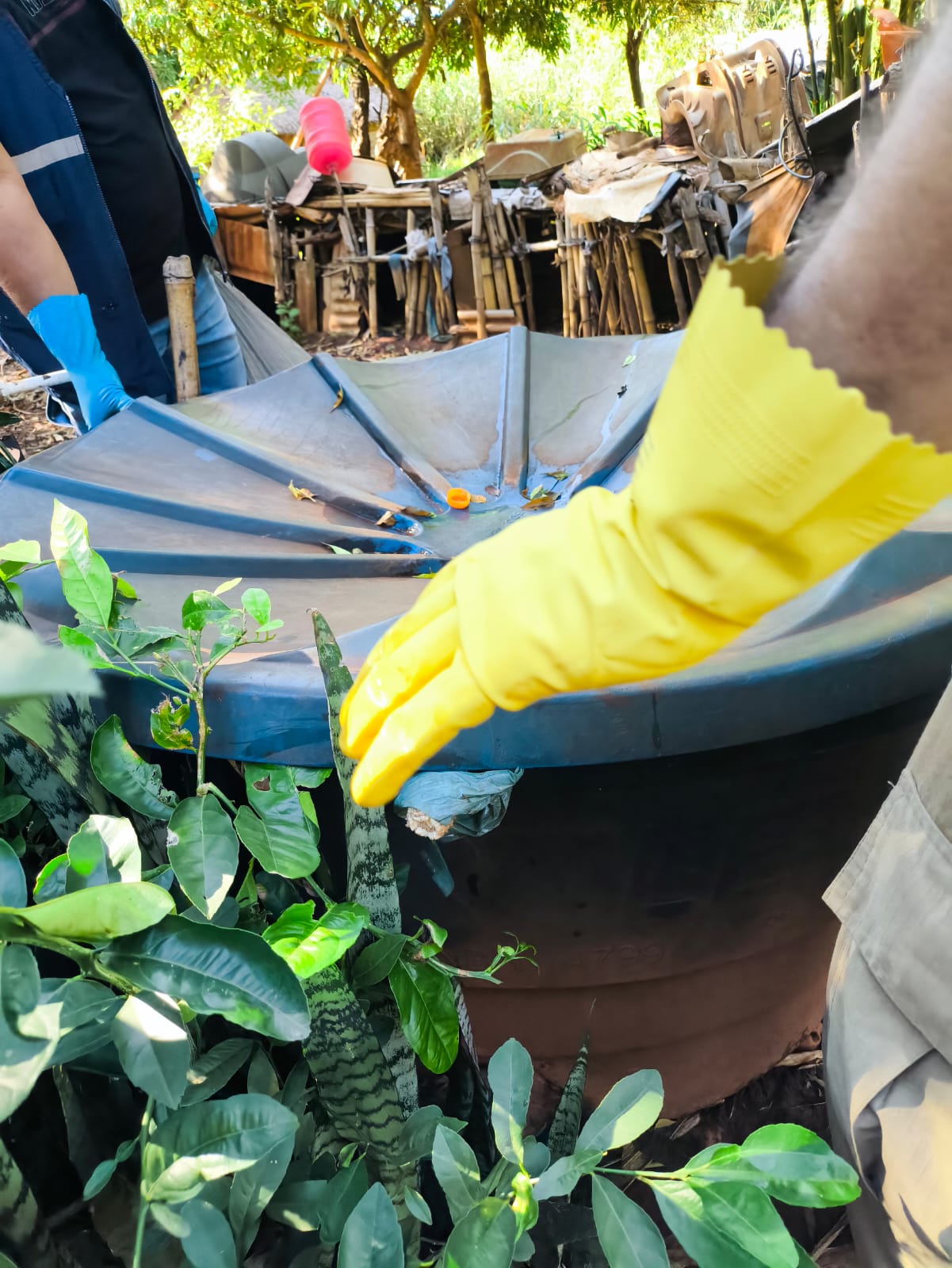 Durante a mobilização, foram realizadas atividades de eliminação de criadouros do mosquito Aedes aegypti, além de orientações diretas à população sobre prevenção e cuidados. Equipes percorreram a comunidade com foco na retirada de materiais que acumulam água parada, principal fator para a proliferação do mosquito.